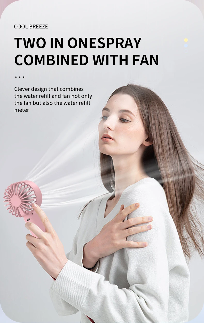 2.Combines spray and fan functions—not justan electric fan but also a hydration device.